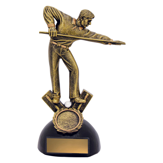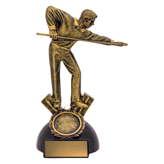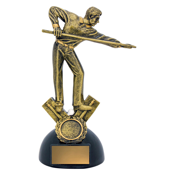Popular sculptured trophy series well suited for snooker or pool events and presentations. Trophies in 3 convenient sizes and finished in classic antique gold colours.