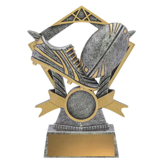 The Valour series of trophies presents a strong design of trophy highlighting the main elements for your sport. Finished in antique silver and gold with space for your custom logo.