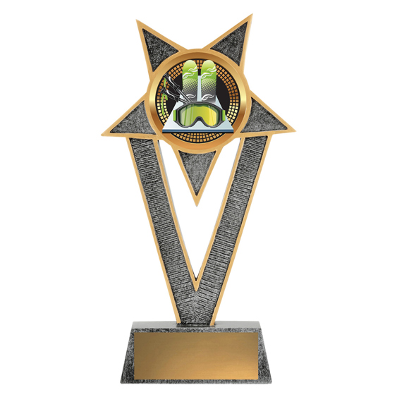 Star inspired trophy series, the Ventura offers prime position for colour insert to represent your sport.