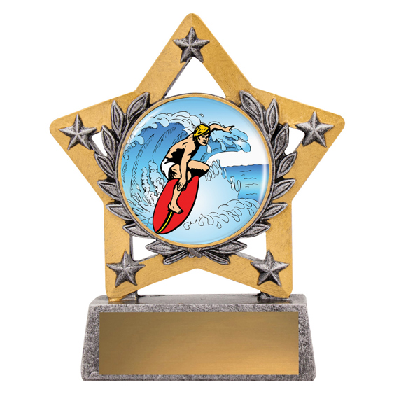Star inspired design with traditional gold and silver colours - showcase brilliant colour image for your sport or activity. Mini stars offer great value.