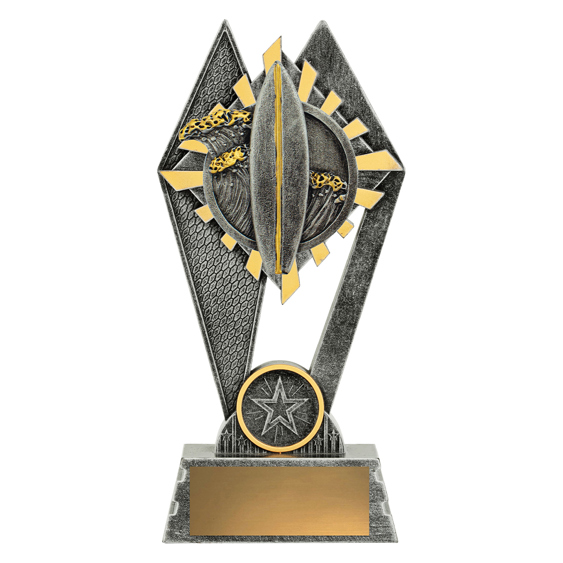 The Peak Series is an innovative offering for your Surf Trophies with super value for such an impressive sizes. An elevated design that showcases classic surfing elements of board and wave against a vibrant sunray background.