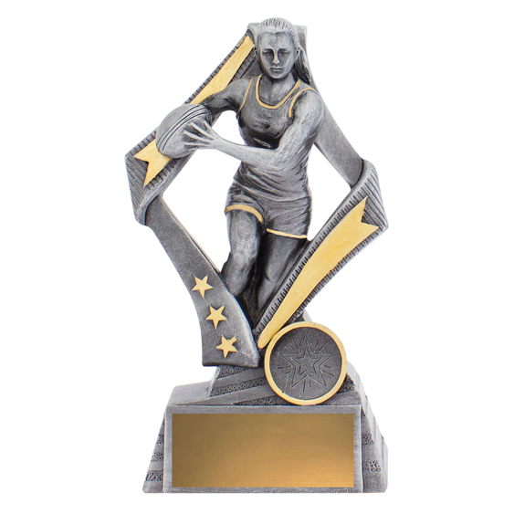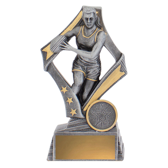 Inspiring design for your Touch Footy Trophies, Flag series features player in action and complete with classic antique silver colours. Substantial trophy with space for customisation if needed.