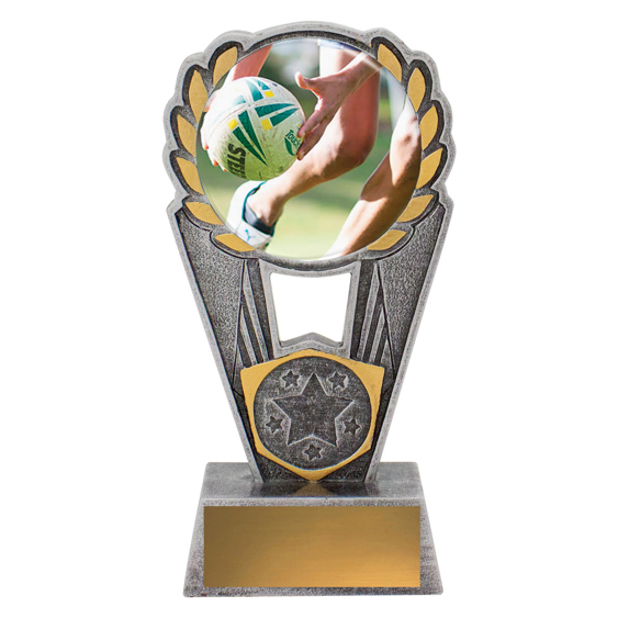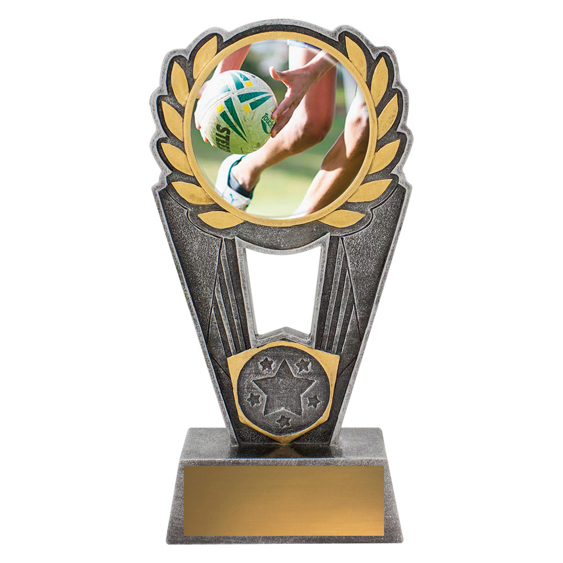 Polaris series offers a striking design of trophy with excellent options for personalisation. Trophies showcase a touch football scene in action over a number of sizes. Space for your 25mm logo if required.