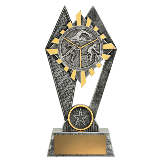 The Peak Series is an innovative set of trophies offering super value for such an impressive size range. An elevated design that showcases the 3 facets of swimming, running and cycling. Available in 3 sizes.